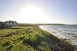 Harlyn (Cornish: ar-Lyn, meaning facing a pool) is a small village on the north coast of Cornwall, England, United Kingdom. It is situated inland from Harlyn Bay (Cornish: Porth Lys, meaning court cove) three miles from Padstow and about one mile from St. Merryn.[1]