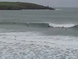 East of Harlyn Bay is the village and beach of Trevone and west of Harlyn are Cataclews Point (Cornish: Karrek Loos, meaning grey rock), Mother Ivey's Bay and Trevose Head. Further west, the beaches at Constantine Bay, Porthcothan and Treyarnon are linked by the South West Coast Path.