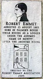 Irish Nationalist leader Robert Emmet was captured near Harold's Cross. He lived for a period in a house in Harold's Cross so he could be near his sweetheart Sarah Curran of Rathfarnham. He led an abortive rebellion against British rule in 1803 and was captured, tried and executed. The Grand Canal bridge linking Harold's Cross Road and Clanbrassil Street was named in his honour and a plaque there commemorates him (the bridge was formerly called Clanbrassil Bridge, and is known locally as Harold's Cross Bridge).