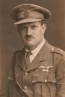 Upon the outbreak of World War I Harold Blackburn joined the Royal Flying Corps, receiving his Certificate 'B’ (no. 214) from the Central Flying School at Upavon, Wiltshire, on 19 August 1914. He flew in combat in France during that year.[14] In 1915 he assumed command of 'C’ Flight of No. 14 Squadron which was then under formation. The squadron commenced operations in the Sinai and Palestine campaign in November 1915, defending the Suez Canal from Turkish invasion. Blackburn received the Military Cross[15] and also designed a bombsight which 2nd Lieutenant Cedric Waters Hill successfully used to destroy the water tank of the remote Turkish outpost at Bir el Hassana on 26 February 1916.[16] Blackburn was given command of No. 22 (Reserve) Squadron in Egypt though he later saw further service in England and France, for which he received the Air Force Cross[17] Blackburn achieved the rank of Lieutenant-Colonel and was mentioned in despatches several times, including a special commendation for his work in the Palestinian campaign from General Sir Archibald Murray.[18]