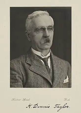 Harold Dennis Taylor (10 July 1862, in Huddersfield – 26 February 1943) was a British optical designer and inventor, chiefly famous for the invention of the Cooke Triplet, although he was granted about 50 other patents.[1]