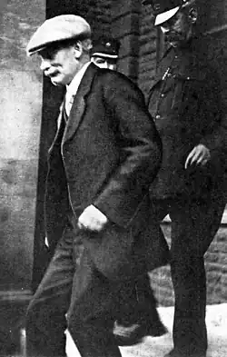Harold Greenwood, a Yorkshire solicitor, moved to Wales in 1898[2] where he, his wife Mabel (née Bowater)[3] and their four children lived comfortably with domestic staff, in Kidwelly, Carmarthenshire.[4] Mabel was not in good health and on 16 June 1919, complained of stomach pains after eating a gooseberry pie for lunch; "it always disagrees with me", she said.[5] Greenwood gave her brandy, which caused her to vomit, and Dr Griffiths was summoned and dispensed medication. By the early hours of the 17th, however, she had died and the cause of death was certified by Griffiths as heart disease.[4] Within a few months of her funeral, Greenwood married Gladys Jones, who was much younger than Mabel, causing much local gossip.[4] Mabel had been an active and popular member of the local community[2] and in October 1919 the gossip had reached such a level that the police proposed to exhume the body for forensic examination; when Greenwood was informed of this, he replied "Just the very thing – I am quite agreeable".[4]