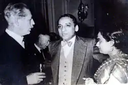 After Harry Crookshank had refused the job, Macmillan attained real power and Cabinet rank late in 1942 as British Minister Resident at Algiers in the Mediterranean, recently liberated in Operation Torch. He reported directly to the Prime Minister instead of to the Foreign Secretary, Anthony Eden. Oliver Lyttelton had a similar job at Cairo, while Robert Murphy was Macmillan's US counterpart.[75] Macmillan built a rapport with US General Dwight D. Eisenhower, then Supreme Allied Commander in the Mediterranean (SACMED), which proved helpful in his career,[76] and Richard Crossman later recalled that Macmillan's "Greeks in the Roman Empire" metaphor dated from this time (i.e., that as the US replaced Britain as the world's leading power, British politicians and diplomats should aim to guide her in the same way that Greek slaves and freedmen had advised powerful Romans).[77] Macmillan told Crossman: "We, my dear Crossman, are the Greeks in the American empire. You will find the Americans much as the Greeks found the Romans—great big, vulgar bustling people, more vigorous than we are and also more idle, with more unspoiled virtues, but also more corrupt. We must run AFHQ (Allied Forces Headquarters) as the Greek slaves ran the operations of the Emperor Claudius".[78] At the Casablanca Conference Macmillan helped to secure US acceptance, if not recognition, of the Free French leader Charles de Gaulle.[79] Macmillan wrote in his diary during the Casablanca conference: "I christened the two personalities the Emperor of the East and the Emperor of the West and indeed it was rather like a meeting of the late Roman empire".[78] For Macmillan, the "remarkable and romantic episodes" as President Roosevelt met Prime Minister Churchill in Casablanca convinced him that personal diplomacy was the best way to deal with Americans, which later influenced his foreign policy as prime minister.[80]