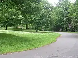 The park lodge and a small car park are in the east close to the entrance on Park Road, while the other entrance is in the west on Cemetery Road.[1][2][4] Information boards are located around the park.[2]