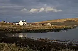 ![]() At Haroldswick beach, the white building is Bordanoost and the grey buildings just right of centre are the houses of Beach Road. | |