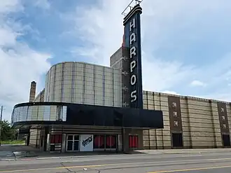 Harpos was built in 1939 as the Harper Theatre, an Art Moderne-styled movie theater operated by the Wisper-Westman circuit. Charles N. Agree, the architect of the earlier Grande and Vanity Ballrooms, designed the theatre. Contemporaries of the Harper Theatre included the Westown (1936), the Royal (1940), and the Dearborn (1941), all designed by Agree in similar style for the same company.[1]