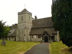 Remains of a Roman villa have been found about 0.5 miles (800 m) southwest of the village.[2] In the 11th century during the reign of King Edward the Confessor the manor of Harpsden belonged to Wigod, the thegn of Wallingford. After the Norman Conquest of England, Harpsden became part of the Honour of Wallingford.[3] The Church of England parish church of Saint Margaret[4] was originally late Norman, as evidenced by the piscina, font and a blocked doorway that survive from this period.[5] The current windows in the nave and chancel were inserted in the 14th century, and a stone effigy of a knight dates from the same period. In 1848–54 the Gothic Revival architect Benjamin Ferrey lengthened the nave and added the north aisle and tower. In 1879 the architect Henry Woodyer restored the chancel.[5]