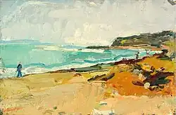 Barber's paintings are refreshingly raw, colour piled on in an effort to summon up the emotion of the place rather than worrying to much about accuracies. They have an endearing hint of the naïve about them[8]