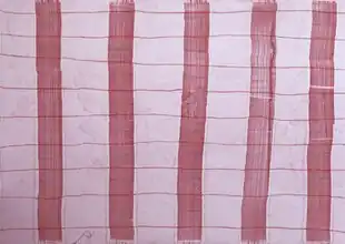 Reviewers described the resulting work as surprisingly compelling given her easily comprehended, simple method; in conceptual terms, they noted Korman's emphasis on arbitrariness and seeming nonchalance about the end product, which ran counter to the more heroic narratives of minimalism.[25][3][26] Hilton Kramer described both an "appealing delicacy and purity" and pictorial insistency in Korman's spare forms (like stems and stitches) and pale, close-value colors, which recalled work by Agnes Martin and Eva Hesse;[26] Roberta Smith wrote that Korman's work—denser, less taut, and more confident and inattentive—advanced Martin's, yielding "quietly radiant surfaces" that pulsate between fragility and robustness like breathing.[3][39]
