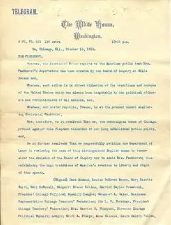 - ^ "Both Sexes Vie for Honors at Pankhurst Talk". The Inter Ocean. 1913-11-01. p. 1. Retrieved 2020-08-18 – via Newspapers.com.