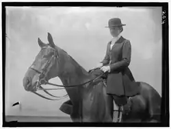 She came from a family with a strong background in horse riding and fox hunting; her uncle W. Austin Wadsworth was Master of the Genesee Valley Hunt.[3] She began riding sidesaddle at age five. She was later diagnosed with scoliosis and the doctor suggested ridding sidesaddle facing the offside (right) of the horse, opposite of the customary position. She rode in this fashion the rest of her life.[4][5]