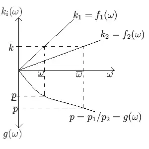 and solving for the price ratio, provides the formula which is to be graphed in the fourth quadrant. Graphing these three functions together shows the relationship.