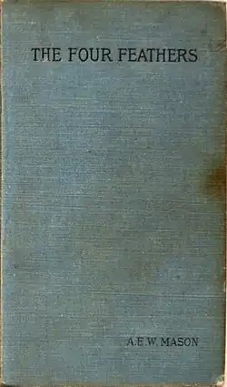 The Four Feathers is a 1902 adventure novel by British writer A. E. W. Mason that has inspired many films of the same title. In December 1901, Cornhill Magazine announced the title as one of two new serial stories to be published in the forthcoming year.[1] Against the background of the Mahdist War, young Feversham disgraces himself by quitting his regiment; others condemn his cowardice, symbolized by the four white feathers they give him. He belatedly redeems himself with acts of courage and wins back the heart of the woman he loves.[2]