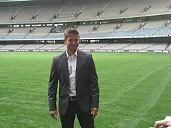 As a player, Kewell represented Leeds United, Liverpool, Galatasaray, Melbourne Victory, Al-Gharafa and Melbourne Heart. While at Leeds he was named the PFA Young Player of the Year in 2000. Internationally, he received 58 caps, and scored 17 goals while playing for Australia. A left winger also capable of playing as an attacking midfielder or second striker, he is often regarded within the media as "Australia's finest soccer export",[6] despite his career being blighted with injury.[7][8][9] In 2012, Kewell was named Australia's greatest soccer player in a vote by Australian fans, players and media.[10][11][12]