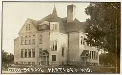 Hartford incorporated as a city in 1883. While Hartford had a large German-American population in the 19th century and was home to several German cultural associations, including the Hartford Turners, the Hartford Schützenverein, and a chapter of the Sons of Hermann,[16] the Germans in Hartford tended to be more assimilated than Germans in other Washington County communities. In 1912, one historian observed that in Washington County "there have always been places where the American [culture] predominated. Take the example of the two cities in the county. Hartford always was more of an American community than West Bend."[22]