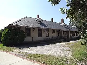 Hartsville station, also known as the Hartsville Depot, is a historic train station located at Hartsville, Darlington County, South Carolina. It was built in 1908 by the Atlantic Coast Line Railroad, and is a one-story structure typical of early 20th century railroad design. It has a hipped slate roof with a deep overhang supported by large wooden brackets. The Atlantic Coast Line discontinued this line to Hartsville in 1940, and in 1948 the station became the office for the Chairman of the Board of Directors of the Atlantic Coast Line Railroad Company.[2][3]