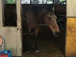 Post retirement, there were plans to have her breed with Deep Impact as well as Stay Gold but those never materialized.[13][14][15] Once those plans fell through, she was transported by her owner at the time in 2013 to the Matha Farm in Onjuku, Chiba, where she has lived since.[16][17]