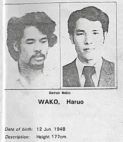 Haruo Wakō (和光 晴生, Wakō Haruo; June 12, 1948 – November 4, 2023) was a Japanese communist militant, member of the Japanese Red Army (JRA).