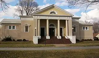 The First Church of Christ, Scientist was established in Davenport in 1892 by 16 practitioners as a branch of the mother church in Boston.[2] They built this building, which was designed by the prominent Davenport architectural firm of Clausen & Clausen, in 1912. A Christian Science Reading Room was opened downtown. First Church moved in the 1970s to a new facility on Fairhaven Road in Davenport.