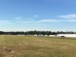 The airport is located in the floodplain of the Snohomish River, which has periodically flooded the runway, including a major flood in 1990;[9] a levee was built in 1995.[6] In 2005, the Snohomish County government petitioned the Federal Emergency Management Agency (FEMA) to reclassify the area around Harvey Airfield as a former flood hazard zone to allow for development and potential expansion. The action and other studies to determine impact on the local environment were opposed by local residents and later the City of Snohomish due to potential noise and traffic issues in addition to flood hazards.[10] The asphalt runway was resurfaced in 2021.[11]