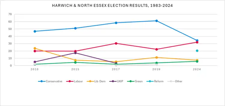 6. ^ "Harwich and North Essex – General election results 2024". BBC News. Retrieved 5 July 2024. 3,561