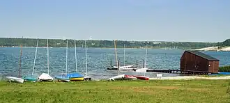 Haselbacher See is a lake in Leipzig (Saxony)/ Altenburger Land (Thuringia), Germany. At an elevation of 151 m, its surface area is 3.35 km2. The lake is a part of the Central German Lake District.