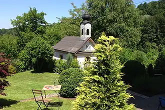 In 1689 during the construction of a new house, a momentous accident happened. A scaffolding broke and seven workers fell into the ditch but as by a miracle nobody was hurt. As a result, the pious miller family vowed to build a small chapel in honour of Mary, mother of Jesus,[3] assisted by the chapel's master builder. That master builder came from Carinthia or Lienz District, where a picture of the Blessed Virgin Mary of Luggau was adored by the people since 1513. A copy of this picture is in the centre of the altar and gave the name to the chapel. Despite the plain architecture, there are some fine artworks within the building. The chapel is situated along the famous pilgrim's way to St. Wolfgang at Lake Wolfgang.[4]