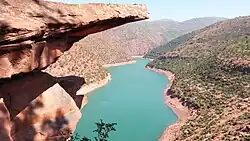 The Hassan I Dam is an embankment dam located 19 kilometres (12 mi) northeast of Demnate on the Lakhdar River in Azilal Province, Morocco. Completed in 1986, the dam provides water for the irrigation of over 40,000 hectares (99,000 acres) of farmland. The dam's hydroelectric power plant also generates 132 gigawatt-hours (480 TJ) on average annually. At 145 metres (476 ft) in height, it is the tallest dam in Morocco and the tallest earth-fill dam in Africa. The dam is named after Hassan I of Morocco.[2]