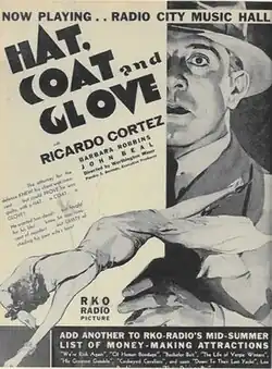 Hat, Coat and Glove is a 1934 American pre-Code crime drama film directed by Worthington Miner from a screenplay by Francis Faragoh. It starred Ricardo Cortez, Barbara Robbins, and John Beal.