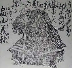 Hatakeyama Yoshinari (畠山 義就; 1437? – January 21, 1491) was a Japanese samurai and feudal lord (daimyō) of the Muromachi period (early 15th century), who is most known for his rivalry with Hatakeyama Masanaga over the position of Kanrei, or Shōgun's Deputy.