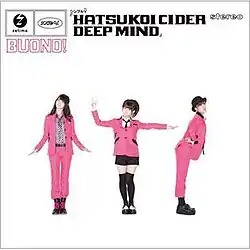 "Hatsukoi Cider / Deep Mind" is Buono!'s first double-A side single. The song "Hatsukoi Cider" was used as the closing theme for the television series Sūgaku Joshi Gakuen, in which Buono! members, as well as other members of Hello! Project, played[3][4] (the opening song being "Pyoco Pyoco Ultra" by Morning Musume). "Hatsukoi Cider" was also chosen as the January 2012 closing theme for the Nippon Television musical variety show Happy Music,[3][5] the successor of the musical program Ongaku Senshi Music Fighter.
