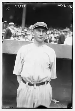 Del Pratt played for the 1910 Hattiesburg Timberjacks. Pratt later advanced to the major leagues, where he played 13 seasons with career totals of 987 RBI, a .292 batting average and 45.7 WAR.[24] As a rookie with the 1912 St. Louis Browns, he batted .302 for the season. Pratt led the American League with 103 RBI in 1916. Pratt later became the baseball coach at University of Michigan baseball coach, following Carl Lundgren after being recommended for the position by Branch Rickey. Pratt also served as an assistant football coach and freshman basketball coach at the University of Michigan.[25] Pratt batted .367 while playing for Hattiesburg in 1910.[26]