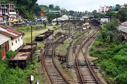 The Hatton railway station was opened on 4 June 1884 when the main line was extended from Nawalapitiya to Hatton.[1] The station was the terminus of the main line until the line was extended to Nanu-Oya on 20 May 1885.[2] The station has a reservation and train enquiry section, ticket office, cloak room, waiting hall, book stall, tea stall, toilet blocks and catering area together with a public car parking area.