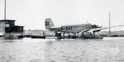 During the German occupation of Norway from 1940 to 1945 the Luftwaffe used the airport for Ju 52 transport seaplanes.[4] DNL resumed flights out of Haugesund on 6 October 1946, this time with two daily round trips. DNL flew until the end of the 1949 summer season using the Ju 52. Widerøe took over the route for the 1950 season, using an eight-passenger Noorduyn Norseman. They failed to get ends to meet and operated only for a single season.[5]