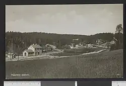 The new route allowed the railway to establish a station at Hauketo, which opened on 15 February 1925. It initially only had a simple platform in each direction. A station building with a waiting room, post office and cargo ramp.[3] Hauketo received some housing in the 1920s, but first during the late 1940s was there any large-scale construction in the former rural area. There were some condominiums, but the neighborhood consisted for the most part of single dwellings.[4]