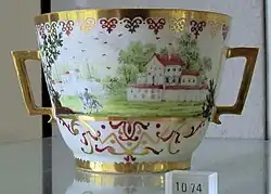 Hausmalerei reached an artistic pinnacle with paintings on Meissen porcelain and Vienna porcelain in the second quarter of the 18th century; sometimes Meissen porcelains remained blank for decades before they were painted.[2] Many painters and workshops have distinctive styles; a few were amateurs.[3]