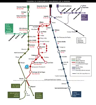 The Havana Suburban Railway (Spanish: Red del ferrocarril suburbano de La Habana) is a passenger suburban rail network serving the city of Havana, capital of Cuba, and its suburbs. Owned by the national company Ferrocarriles de Cuba, it represents the only suburban rail system of the Caribbean island.