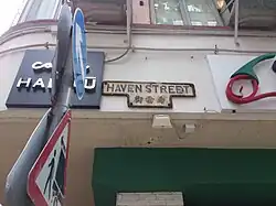 Haven Street (Chinese: 希雲街) is a street in Causeway Bay, Hong Kong Island. This is a cul-de-sac in the southern part of Causeway Bay, connected to Leighton Road on one side. The street is named after Haven, a group of ports in Essex and Suffolk on the east coast of England.
