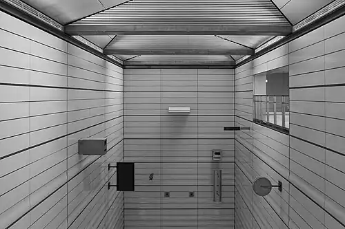 The metro station hosts a permanent art installation of the artist group Superflex, which includes clocks and other station inventory hanging upside down, and clocks going wild forward and backwards [2][3]