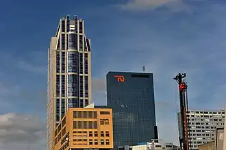 ![]() Codarts building (orange) in central Rotterdam, in front of the Millennium Tower | |