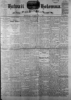 The Hawaii Holomua ('Hawaiian Progress' or 'Improving Hawaii') was an American daily and weekly newspaper published in both Hawaiian and English. It was founded in 1891 with four editions: two versions were published in solely Hawaiian daily and weekly; and another two were published in both Hawaiian and English, also daily and weekly. The bilingual versions were replaced by an English-only version in 1893, following the newspaper's purchase by the Holomua Publishing Company. The newspaper was a vocal supporter of the Hawaiian Kingdom, and actively opposed the Provisional Government of Hawaii following the kingdom's 1893 overthrow. It was the only newspaper in Hawaii to publish Queen Liliʻuokalani's protest against the overthrow and her appeal to U.S. President Grover Cleveland. The Hawaii Holomua and its various editions suddenly ceased publication in 1895.