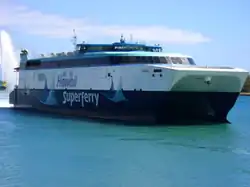 Hawaii Superferry was a Hawaii-based transportation company that provided passenger and vehicle transportation between Honolulu Harbor on the island of Oʻahu and Kahului Harbor on Maui. Legal issues over environmental impact statements and protests from residents of Maui and Kauaʻi temporarily delayed the implementation of service, but service between Oʻahu and Maui began in December 2007. The company had hoped to return service to Nawiliwili Harbor on Kauaʻi and additionally planned to eventually provide service to Kawaihae Harbor on the Big Island.[1]