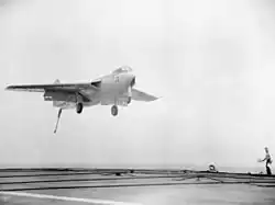 In May 1952, with the addition of a long-stroke undercarriage (from a Sea Hawk), VX272 undertook take-off and landing trials on board HMS Eagle. In June the same year, it received a final modification: a variable incidence swept tailplane, after which it flew high-speed trials with the RAE. These were terminated and VX272 was removed from service in September 1953, following a forced landing.[4]
