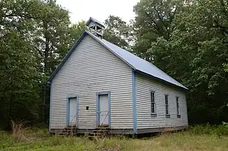 The Hawks Schoolhouse is a historic school building in rural western Perry County, Arkansas. It is located on the south side of County Road 7, in the easternmost section of Ouachita National Forest, near the hamlet of Ava. It is a single-story wood-frame structure, with a gabled roof and weatherboard siding. The roof is capped by a small gable-roofed open belfry. The front facade has a pair of symmetrically placed entrances with simple molding. It was built in 1911, and is a well-preserved example of a district schoolhouse in a rural context.[2]