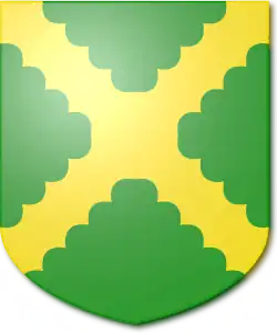 | Shield | Vert a saltire engrailed Or. |