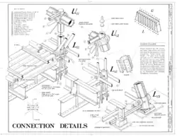 In terms of its truss, the bridge employs a through-truss design; more specifically, it uses a double-intersection Pratt truss, or a Whipple-Murphy truss, also a rare design.[1] The truss is pin-connected, with the columns riveted together at their phalanges to form hollow beams.[3] Because of the multiple web systems employed by this design, this causes the structure to be statically indeterminate.[12] It is also the first bridge design to be calculated to support its intended load using scientific processes.[3]