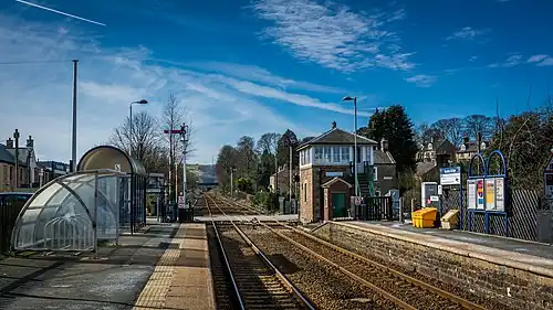 Haydon Bridge is a railway station on the Tyne Valley Line, which runs between Newcastle and Carlisle via Hexham. The station, situated 29 miles 68 chains (29.8 mi; 48.0 km) west of Newcastle, serves the village of Haydon Bridge in Northumberland, England. It is owned by Network Rail and managed by Northern Trains.