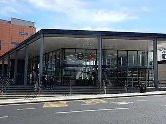 The booking office was replaced in 1961 with a building to a modern design erected on a concrete raft over the line.[7]