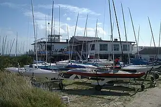 The "old" club house was built in 1936 when the club moved to its present site, a unique position on the southern shores of Chichester Harbour, on the bulbous tip of a narrow peninsula, known as Sandy Point. Here it dominates the harbour entrance and provides immediate access either to the open sea or to the expansive, land-locked waters of the harbour. Sailing is possible at all stages of the tide and times of year.