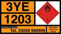 A very commonly displayed example is 3YE on petrol tankers. This means that a fire must be fought using foam or dry agent (if a small fire), that it can react violently and is explosive, that fire fighters must wear a portable breathing apparatus at all times, or if a white on black Y, only if there is a fire, and that the run-off needs to be contained. It also indicates to the incident controller that evacuation of the surrounding area may be necessary.